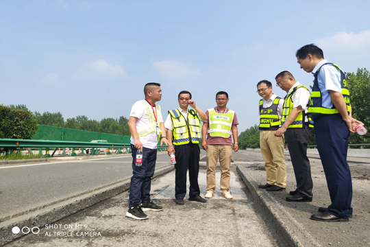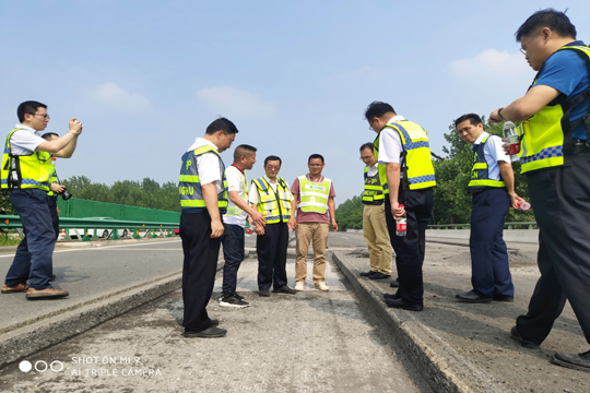 6月27日合肥交投集團董事長黃惠民等一行到我公司中標承建的2019-2021年度安徽省部分高速公路路面修復養(yǎng)護工程02標北環(huán)高速養(yǎng)護施工現(xiàn)場檢查并慰問現(xiàn)場工作人員。黃惠民聽取了現(xiàn)場負責人譚宜飛的匯報后,對我公司的施工方案、工程進度給予充分肯定。因2019年工期緊、任務重,黃惠民要求在保證施工質(zhì)量和安全的基礎(chǔ)上,加快施工進度。