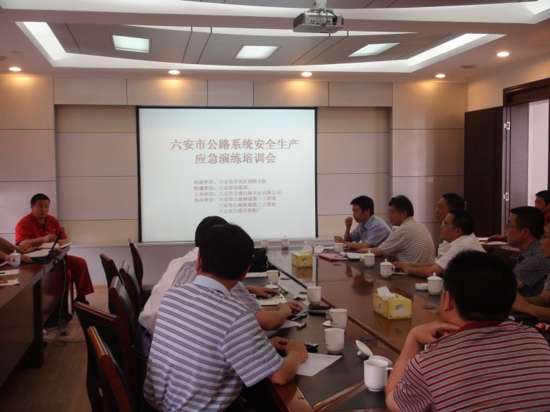 2011年06月19日,在六安市交通公路實業(yè)有限公司舉行了一場"六安市公路系統(tǒng)安全生產(chǎn)應(yīng)急演練培訓(xùn)會",邀請了六安市開發(fā)區(qū)消防大隊張指導(dǎo)員為大家進行了生動的講解,實業(yè)公司、路橋一處、路橋二處、修配廠等單位同志認(rèn)真學(xué)習(xí),通過培訓(xùn)使大家增加了安全防范意識及應(yīng)急處理能力,培訓(xùn)尾聲市公路局及市安監(jiān)局領(lǐng)導(dǎo)對此次演練培訓(xùn)會給予了充分肯定。